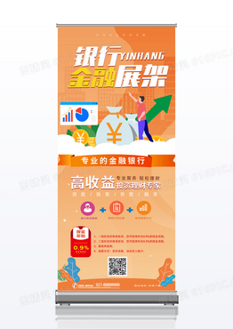 简约时尚橘色商务高收益投资理财专家银行金融展架银行展架