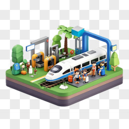 3D火车出行高铁车票任务商旅旅行元素结合免抠元素
