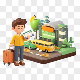 3D开车出行高铁车票任务商旅旅行元素结合免抠元素