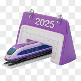 3D插画紫色高铁列车从紫色2025日历中开出来免抠元素