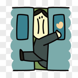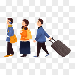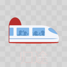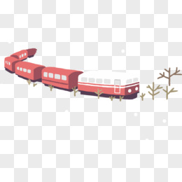 手绘红色线描剪纸一家人跟火车动车场景素材