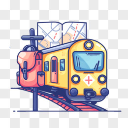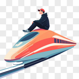 插画戴棒球帽的男孩坐在高铁车头上免抠元素