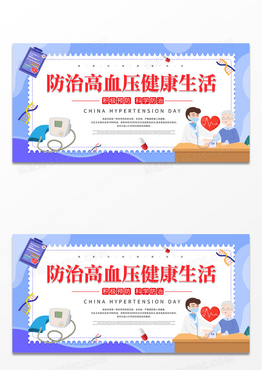 紫色卡通防止高血压健康生活展板全国高血日全国高血压日