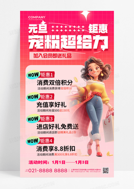 粉色2025年蛇年元旦钜惠宠粉超给力手机宣传海报
