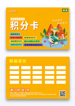 冷饮奶茶名片品种繁多美味更多积分卡黄色简约名片设计模板