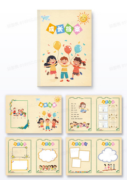 淡黄色可爱卡通成长手册个人档案画册
