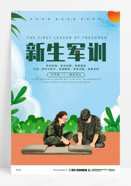 小清新卡通新生军训海报