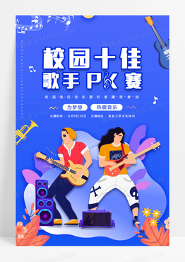 扁平风校园十佳歌手PK赛宣传海报