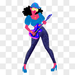 手绘赛博朋克风格炫彩乐队弹吉他的女生插画元素