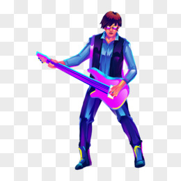 手绘赛博朋克风格炫彩乐队弹吉他的男生插画元素