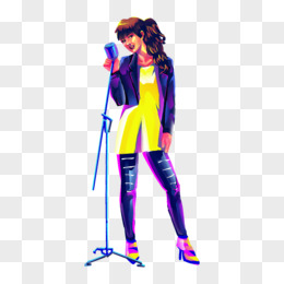 手绘赛博朋克风格炫彩乐队唱歌的女生插画元素