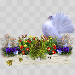 白色鸽子 蓝花 蝴蝶