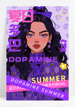 紫色插画彩色多巴胺风夏日多巴胺女孩宣传海报