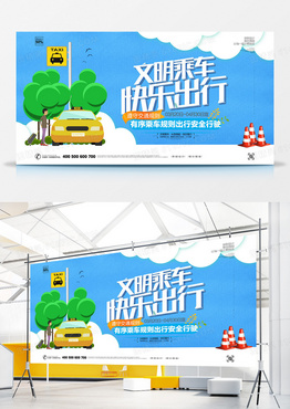 创意卡通清晰安全乘车宣传展板设计