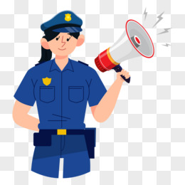 卡通手绘女警手拿大喇叭免抠元素