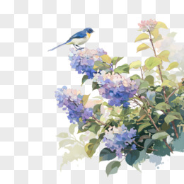 绣球花和鸟儿免抠元素