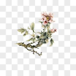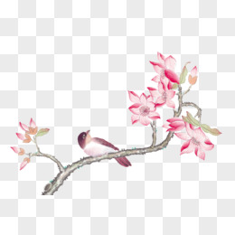 手绘国潮工笔画春天树枝和花鸟元素