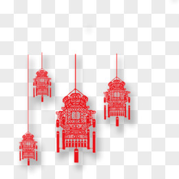 四个剪纸宫灯免抠素材
