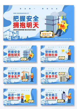 蓝色时尚创意安全生产标语宣传展板组合