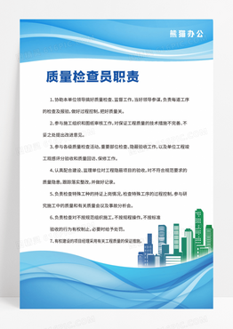 蓝色简约文明工地质量检察员职责管理制度宣传海报