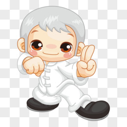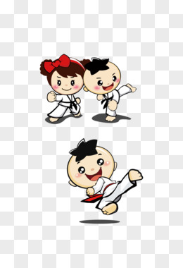 一组卡通手绘女孩练功夫拳法合集之动作一素材