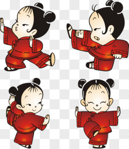 卡通风非遗小男孩在表演中国功夫免抠元素
