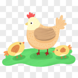 卡通手绘鸡妈妈带着鸡宝宝免抠素材