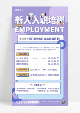 紫色扁平新人培训手机宣传海报