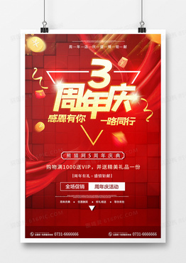红色企业三周年庆促销海报