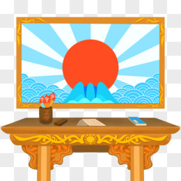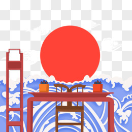 手绘卡通矢量升堂背景墙祥云红日免抠素材