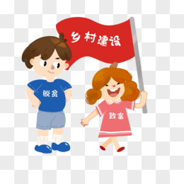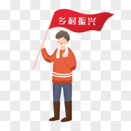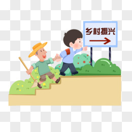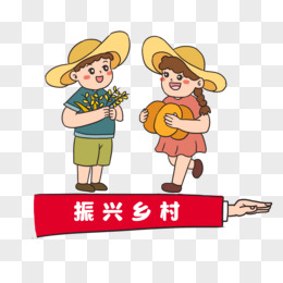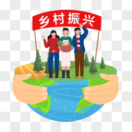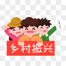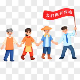 手绘推广乡村振兴拉着横幅开心的人们免抠元素