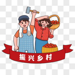 卡通手绘乡村振兴下丰收的人民免抠元素
