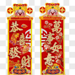 女生手持恭喜发财对联贴纸免抠实拍元素