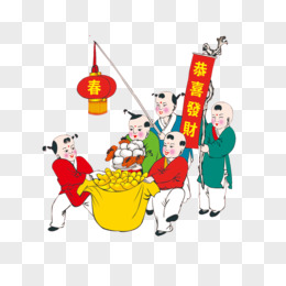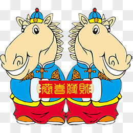 卡通手绘马年冰箱贴手举牌恭喜发财免抠元素