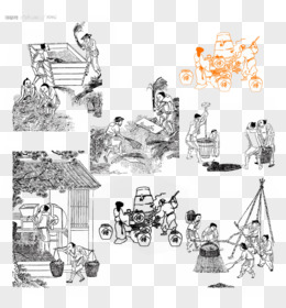 一组古代人物酿酒工艺流程插画组图素材
