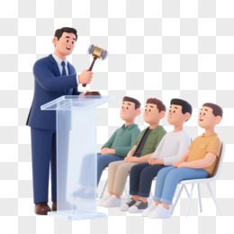 3D卡通穿蓝西服的男拍卖员举槌拍卖场景免抠元素