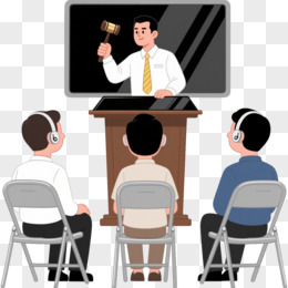 卡通男拍卖员举着法槌站在屏幕旁免抠元素