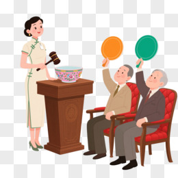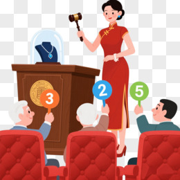 卡通女拍卖员拍卖珠宝拍卖场景免抠元素