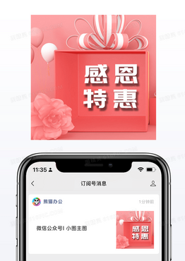 粉色温馨粉色礼物风格感恩节促销公众号小图