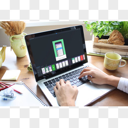 手绘办公笔记本电脑素材