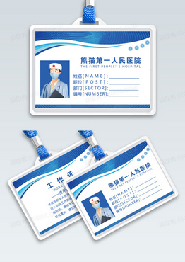 蓝色员工工作证医院工作证工作吊牌医院吊牌横版工作证模版