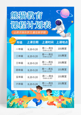 蓝色卡通教育课程计划表宣传海报