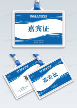 蓝色嘉宾参会证工作牌胸牌吊牌