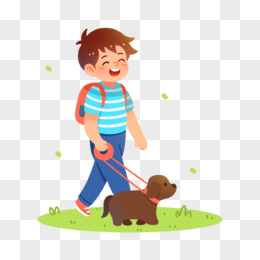 手绘卡通铲屎官给狗子剪毛免抠元素