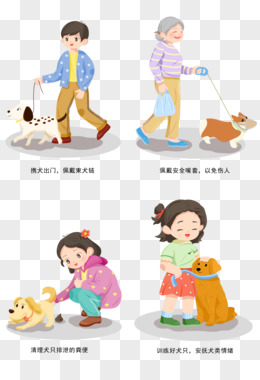 一组文明遛狗行为免抠元素合集
