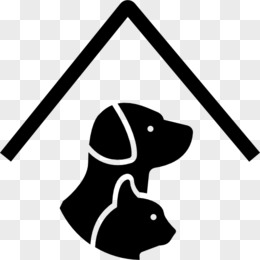 宠物酒店标志与一只狗和一只猫在屋顶线图标