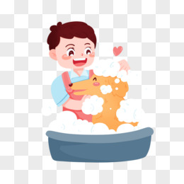 卡通女女孩宠物美容狗洗澡素材
