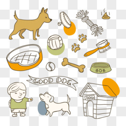 手绘插画风小男孩抱着小狗宠物盘腿坐着元素