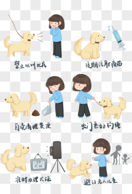 —组卡通文明礼仪套图合集元素之文明遛狗元素