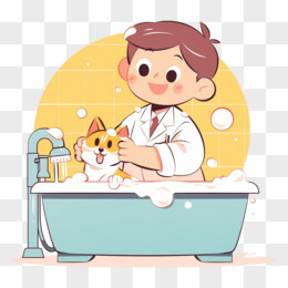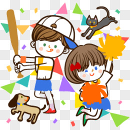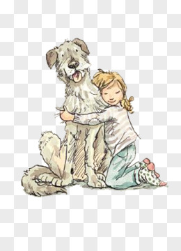 手绘女孩和小狗一起捉蝴蝶插画元素